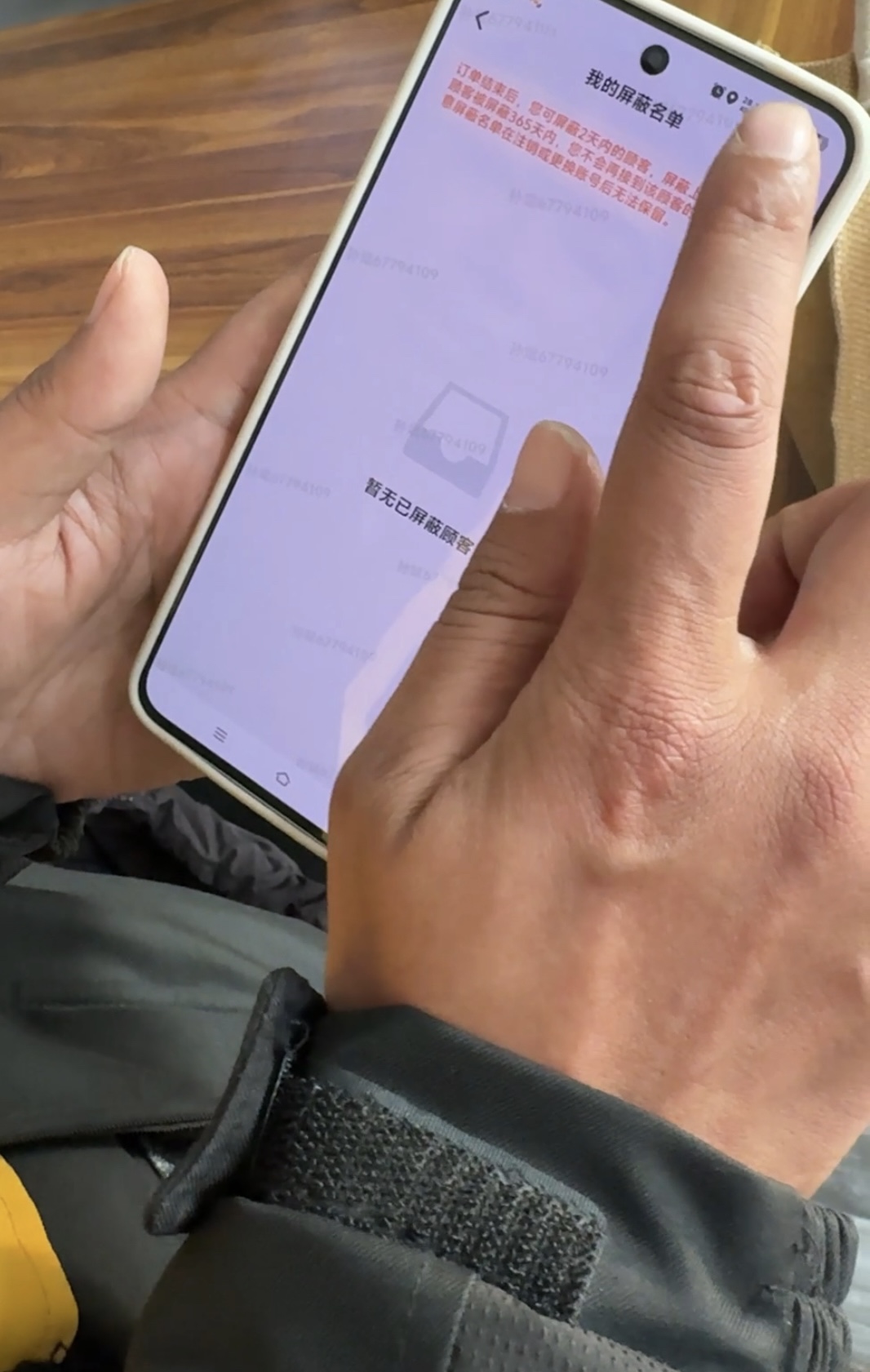 “好像是上个月吧,我在跑单工具的页面上突然发现了这个功能。”孙斌拿出手机,打开自己已完成的订单详情页面。记者发现,在页面最上端有一段红字提示:订单结束后,您可屏蔽2天内的顾客,屏蔽上限为2人。顾客被屏蔽365天内,您不会再接到该顾客的订单。