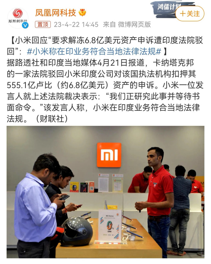 信源 环球网 48亿被冻结!小米在印度踩到的坑多深?