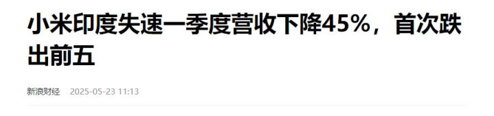 信源 新浪财经 小米印度失速一季度营收下降45%,首次跌出前五